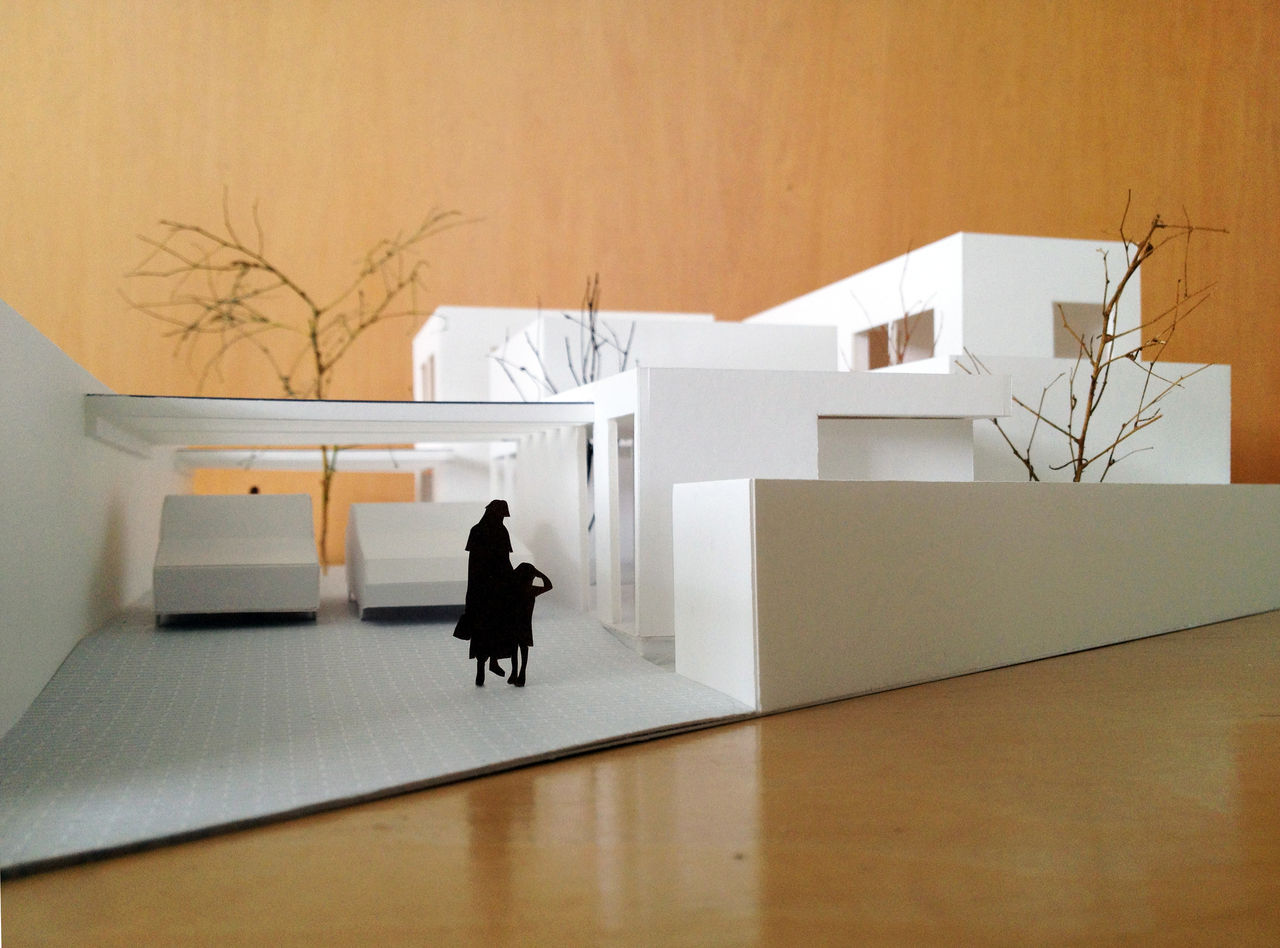 家の内部は、外部との連続性が感じられるように、ゆるやかな土地の傾斜に沿って床がスキップしており、折り曲がった空間と共に、家の中に変化と楽しさをもたらしています。