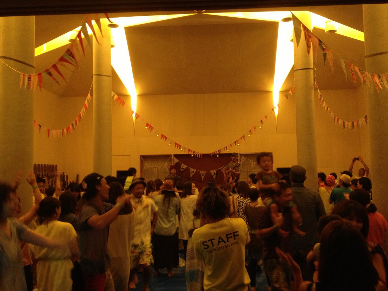 建築士であり住職でもあるタケヤマイツドウ建築設計事務所の武山さんが設計し、今年竣工した「みんなのお寺」が会場です。写真は本堂でのLIVEの様子。みんな楽しそ〜。