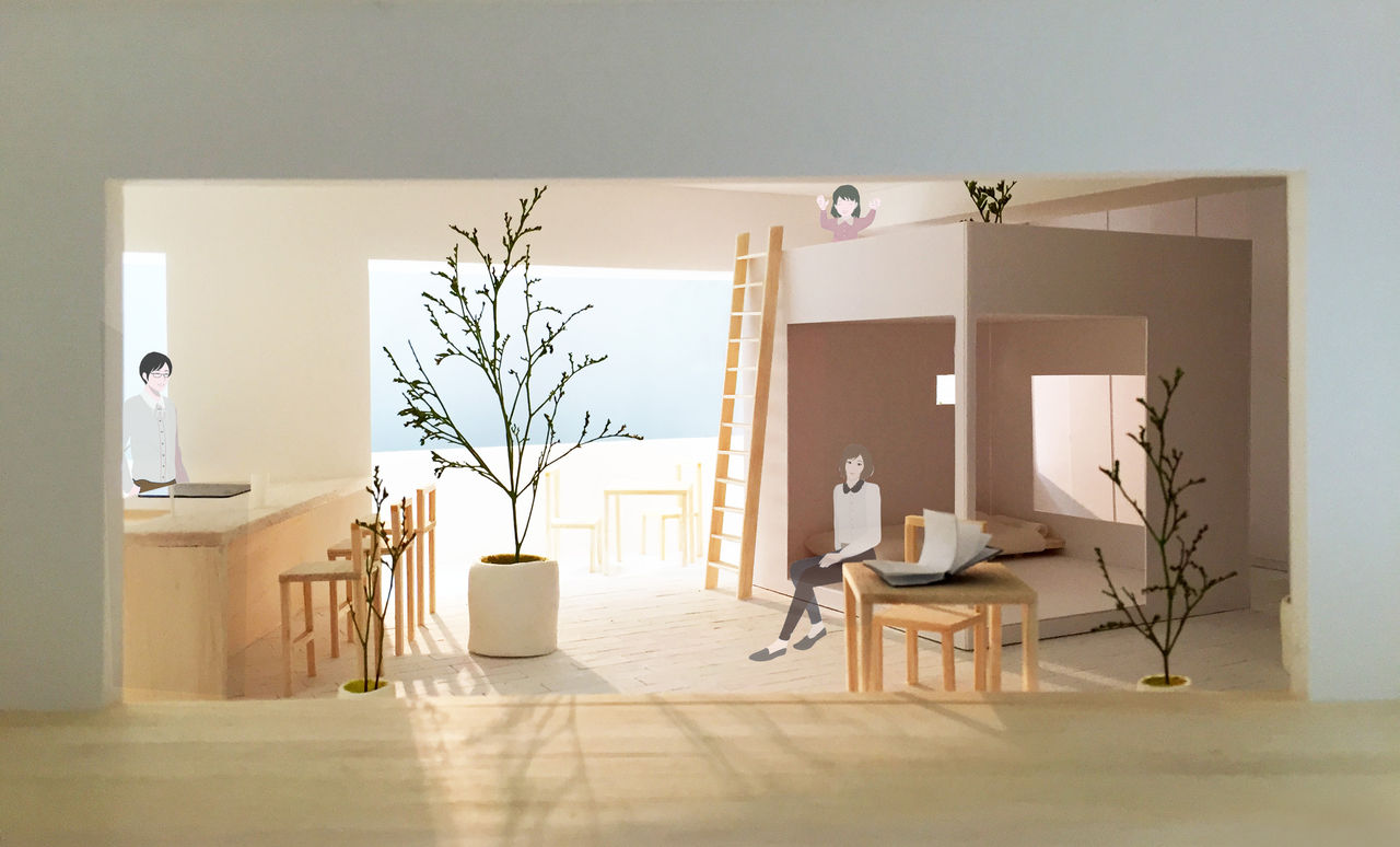 マンションの一室の中に、庭とハナレを提案しています。