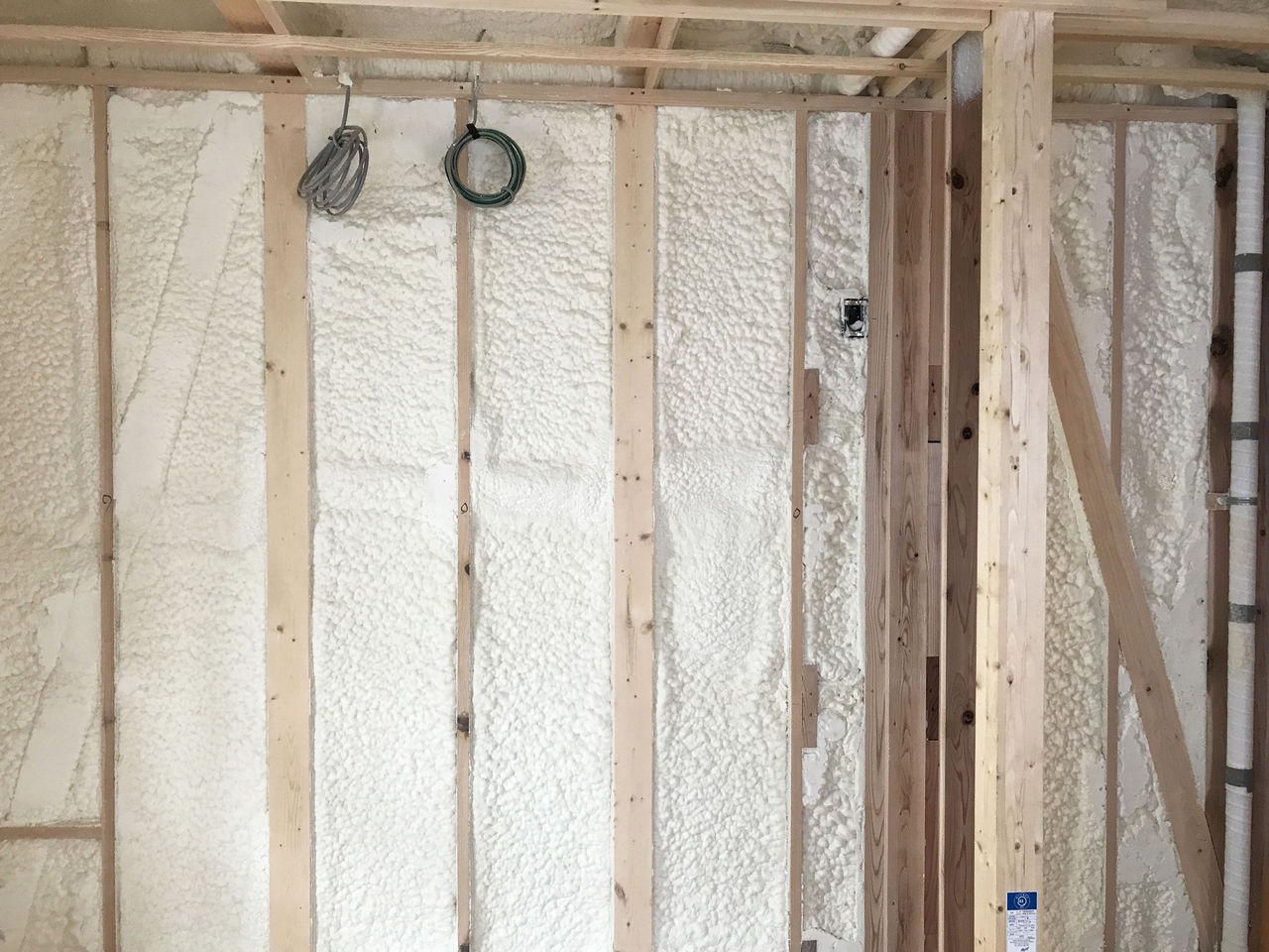 これは、発泡ウレタン吹付です。外壁面は厚90㎜。